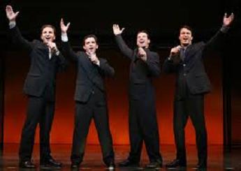left to right Matt Bogart as Nick Massi, Jarrod Spector as Frankie Valli, Sebastian Arcelus as Bob Gaudio,